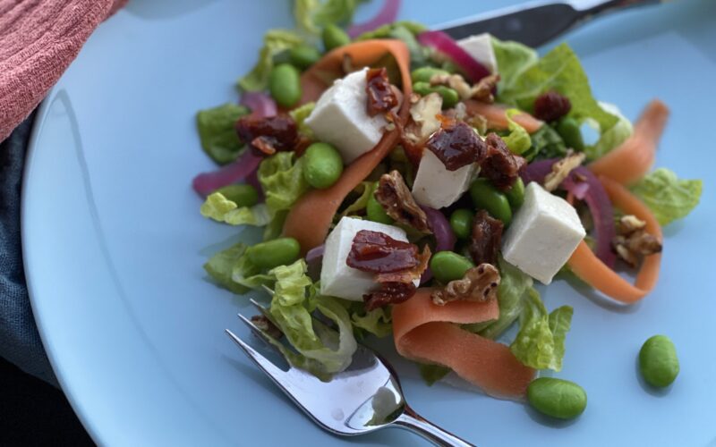 Bland godt saman, og salaten er klar til servering. Haldbar i minst 5 dagar i kjøleskap.