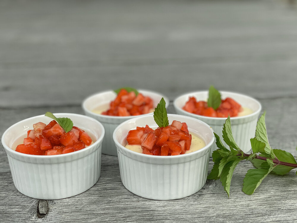 Skjær jordbær i små biter. Ha over sitron og honning og bland det med bærene.