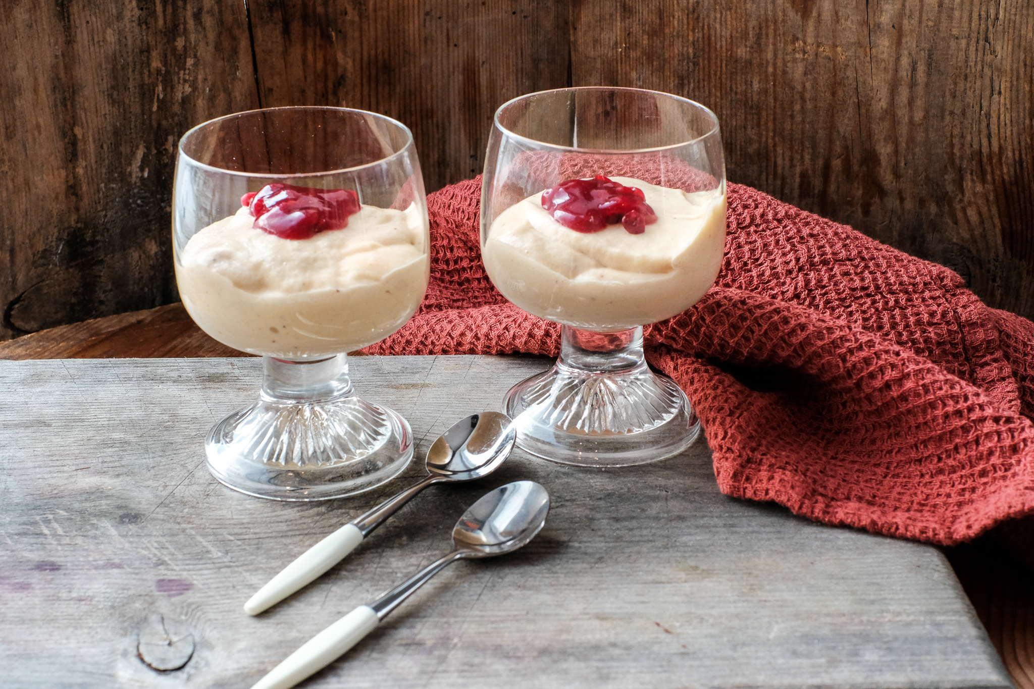 Ha fromasjen i fine glass og sett til avkjøling i kjøleskap til fromasjen er stiv. Dette tar minst 4 timer.
